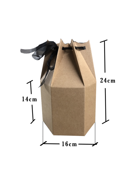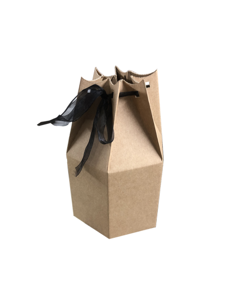Caja bombonera pannetonera hexagonal 16x16x24cm marrón