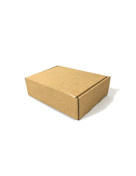 Caja marrón para jamón, paletilla, paleta y embutidos, estilo estuche automontable con asa incluida en color negro.