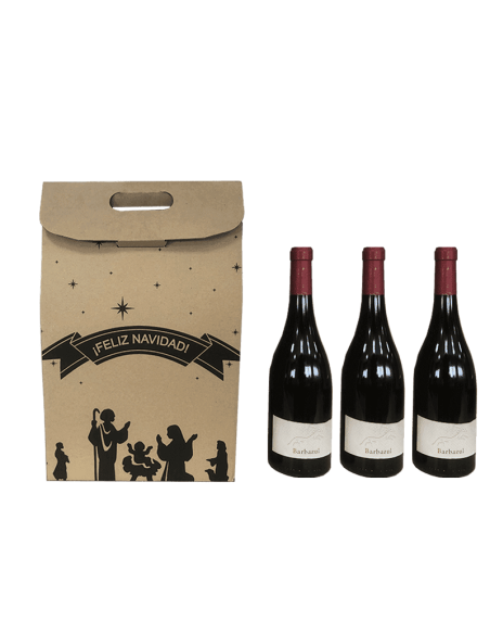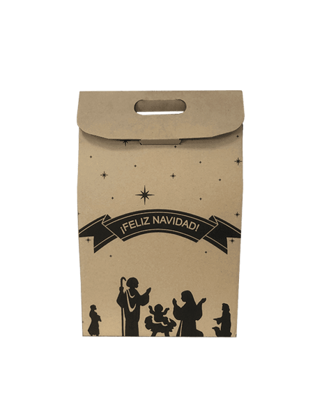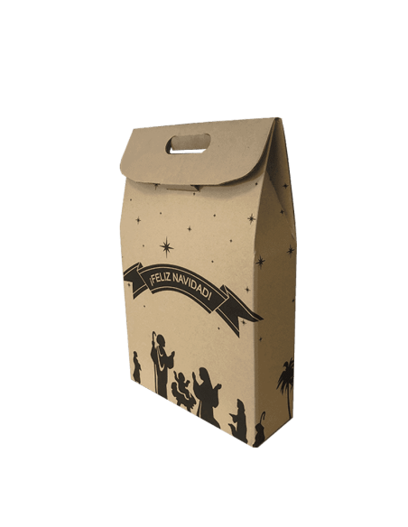Cajas marrones con motivo NAVIDAD impreso de cartón con asa para 3 botellas de vino. Perfecta como envoltorio de regalo y para la entrega de merchandising o cualquier otro tipo de detalle en eventos, cumpleaños y celebraciones de toda clase.