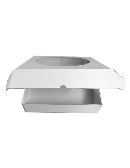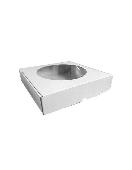 Cajas con ventana para roscón de Reyes tamaño mediano. Perfectas para tu campaña navideña. ¿Quieres tu logo en la caja? Pregúntanos en hola@encajando.es y te las imprimimos ¡desde 10 uds! Medidas interiores 37x37x8cm